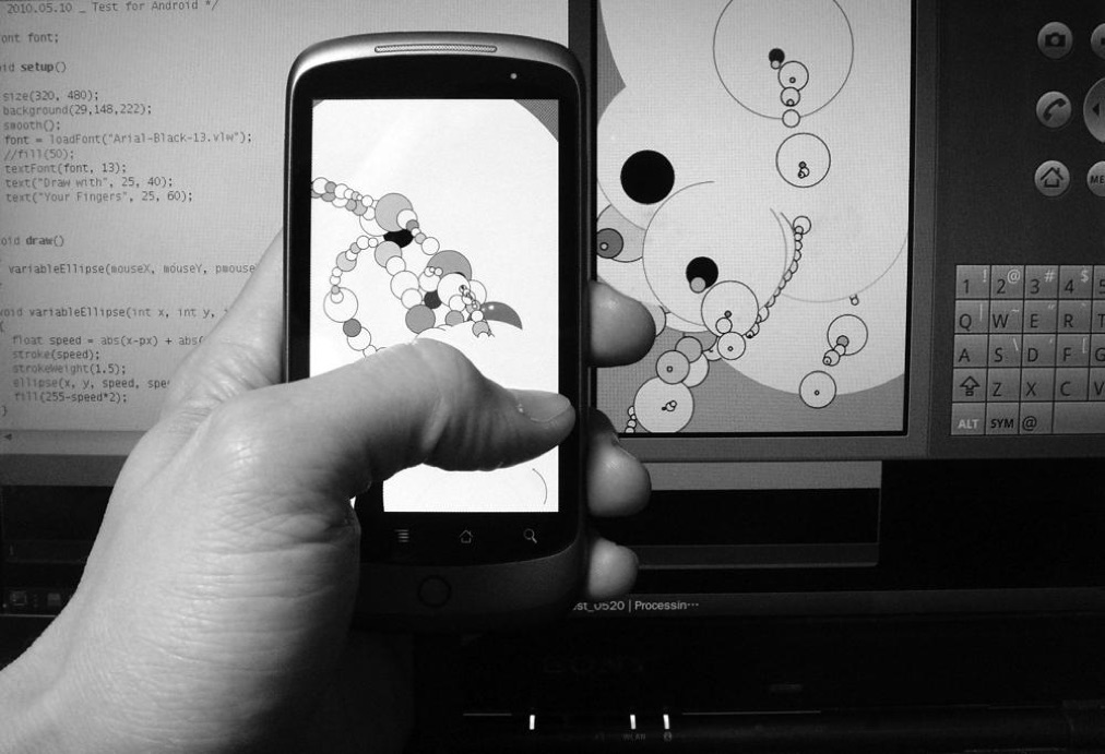 The project has been moving forward since then, slowly at the beginning, and now at a faster pace thanks to the contributions from users and Google Summer of Code Students, and the support of the Processing Foundation. In 2017, I published a book on developing mobile apps using Processing for Android. Our hope with this work is to enable further creative uses of mobile devices, and eventually expand the control and ownership we have over the software that runs on these devices and the data that they collect continuously about our interactions, habits, and whereabouts.