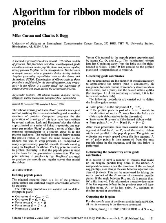 Later on, algrithms to generate these ribbon structures automatically with a computer were proposed by Mike Carson and Charles Bugg in the mid-80s: